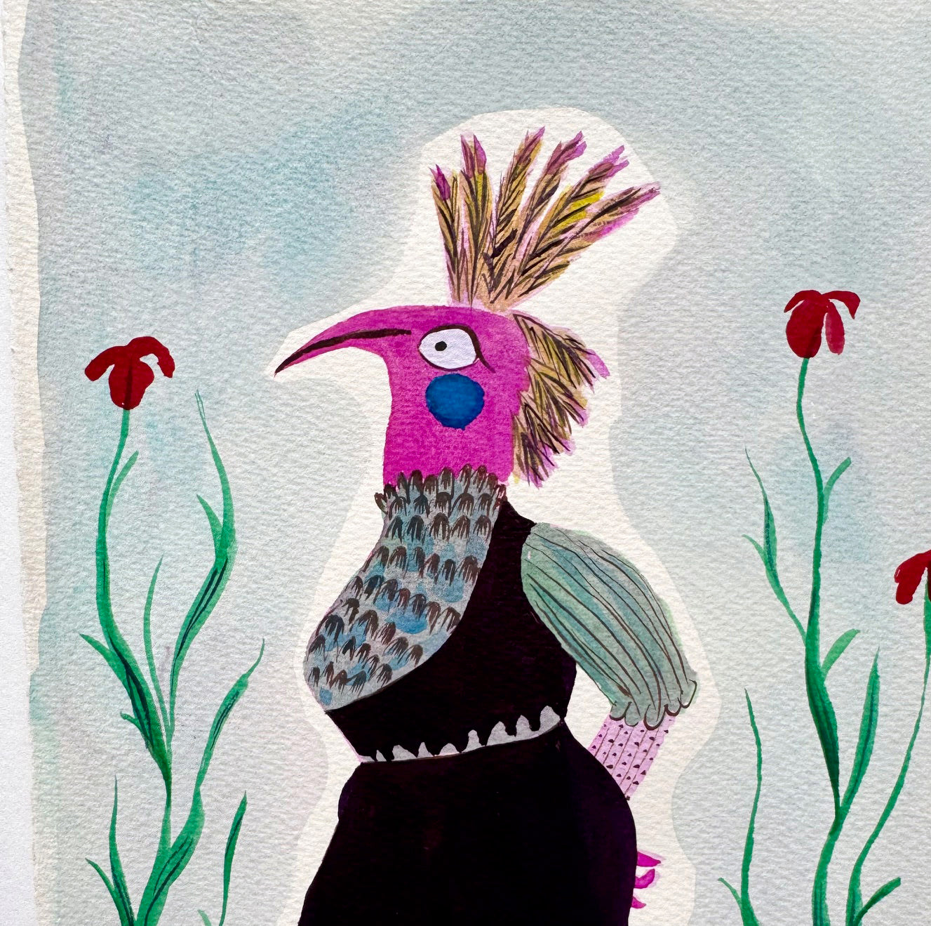 28 x 19.5 cm on watercolour paper in watercolour inks and gouache.