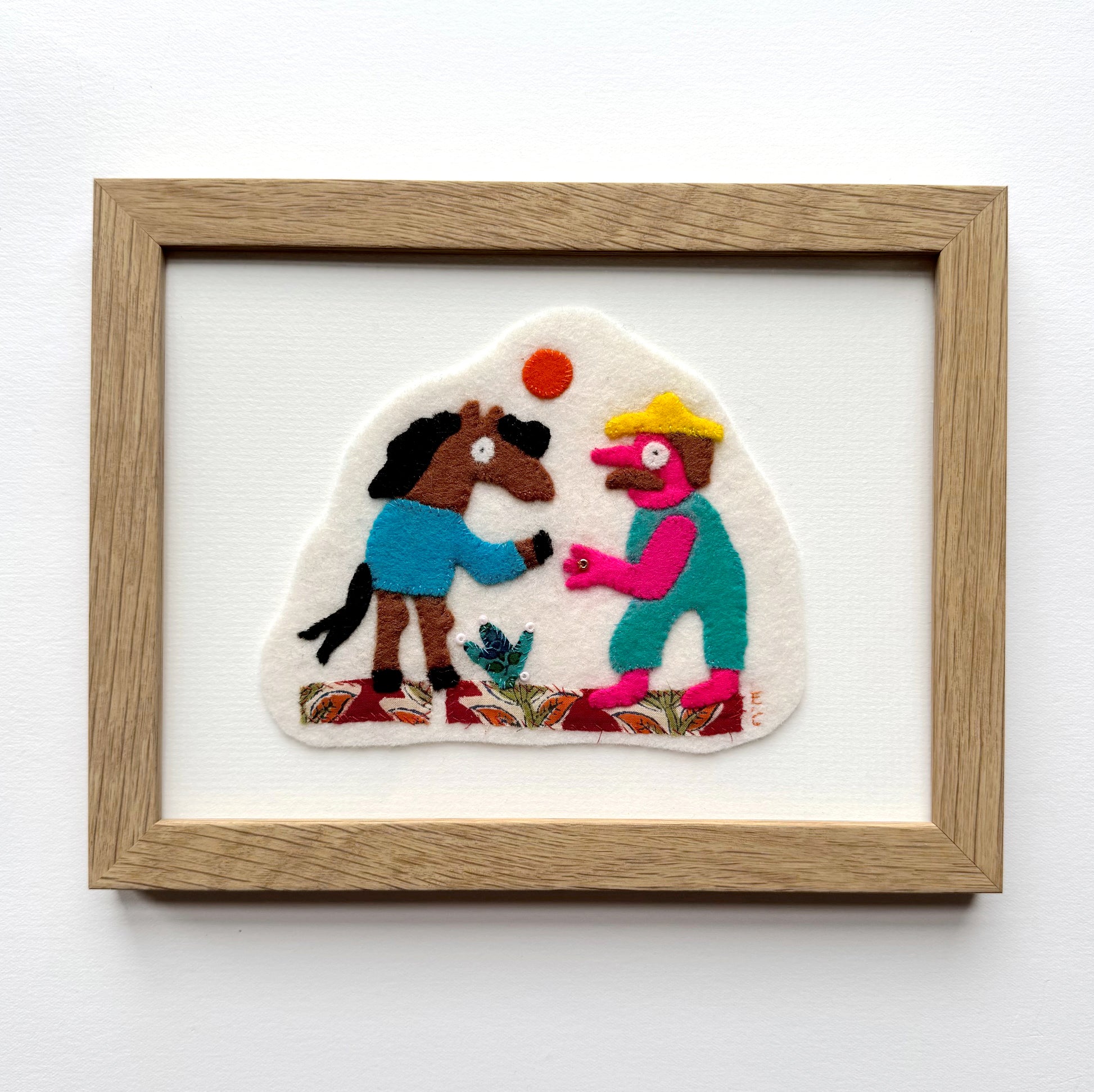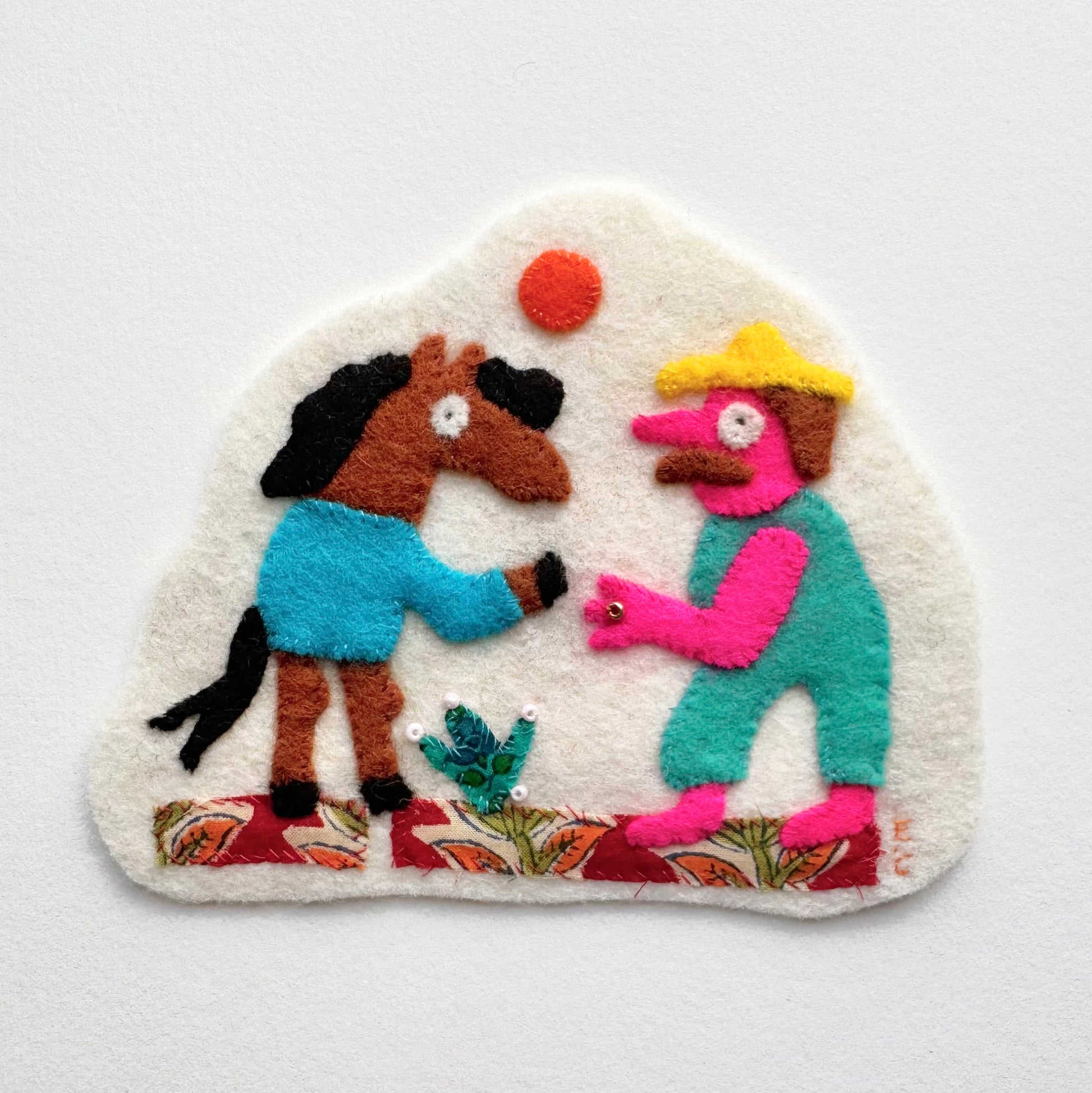 Felt Applique, hand stitched with felt, cotton and beads.